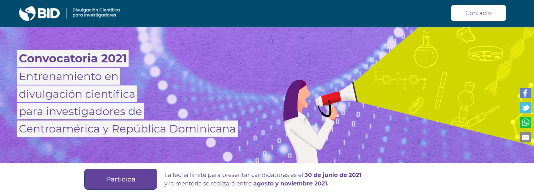 Convocatoria 2021: Entrenamiento en divulgación científica para investigadores de Centroamérica y República Dominicana