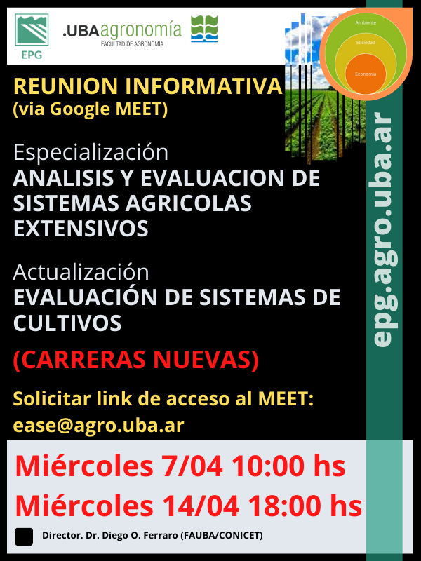 Reunión informativa – Especialización en Análisis y evaluación de sistemas agrícolas extensivos, Argentina